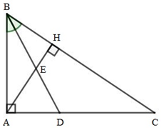 Cho \(\Delta ABC\) vuông tại \(A,\,\,AB = 12cm,\,\,AC = 16cm\). Vẽ đường cao\(AH\,\,(H \in BC)\), đường phân giác \(BD\) của góc \(ABC\) cắt \(AH\) tại \(E\,\,(D \in AC)\).