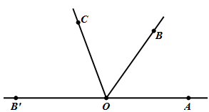 Chứng minh tia OB nằm giữa tia OB’ và tia OA. Từ đó tính được góc \(\angle BOB'\)