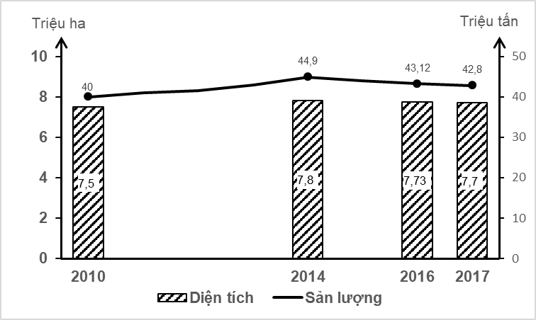 Cho biểu đồ về tình hình sản xuất lúa của nước ta, giai đoạn 2010 - 2017: (Nguồn số liệu