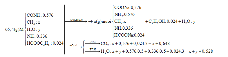 Vậy ta quy đổi hỗn hợp M thành: CONH, CH2, H2O, NH, HCOOC2H5.