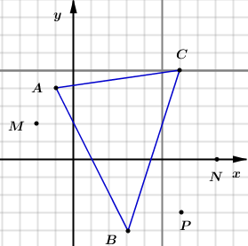 Trong mặt phẳng với hệ tọa độ \(Oxy\), cho các điểm \(A,B,C,M,N,P\) như hình vẽ. Điểm nào dưới đây thuộc đường tròn ngoại tiếp tam giác \(ABC\)?
