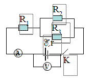 Biết R2 = 2\(\Omega \),R3 = 3\(\Omega \). Khi K mở, vôn kế chỉ 6V. Khi K đóng vôn kế chỉ 5,6V và ampe kế chỉ 2A.