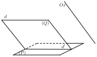 - Tìm mặt phẳng \(\left( Q \right)\) chứa \(d\) và có phương \(Ox\).