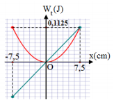 Một con lắc lò xo có đầu trên treo vào một điểm cố định, đầu dưới gắn vào một vật nặng dao động điều hòa theo phương thẳng đứng tại nơi có gia tốc trọng trường g = 10 m/s2. Chọn mốc thế năng tại vị trí cân bằng của con lắc. Hình v ẽ bên là đồ thị biểu diễn sự phụ thuộc của thế năng hấp dẫn và thế năng của con lắc theo li độ x. Chu kì dao động điều hòa của vật gần bằng