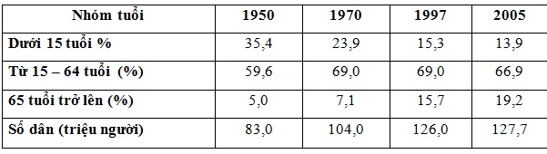 Cho bảng số liệu: SỰ BIẾN ĐỘNG VỀ CƠ CẤU DÂN SỐ THEO ĐỘ TUỔI Cho biết giai đoạn
