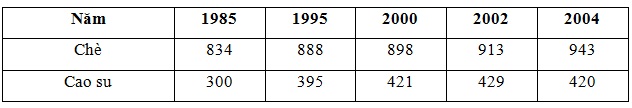 Cho bảng số liệu: Diện tích một số cây công nghiệp của Trung Quốc, thời kì 1985 - 2004 (Đơn