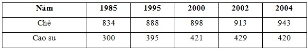 Cho bảng số liệu: Diện tích một số cây công nghiệp của Trung Quốc, thời kì 1985 - 2004 (Đơn