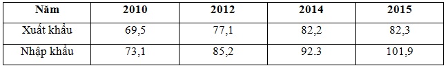 Cho bảng số liệu: XUẤT, NHẬP KHẨU HÀNG HÓA VÀ DỊCH VỤ CỦA PHI-LIP-PIN, GIAI ĐOẠN 2010 – 2015
