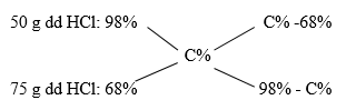 Trộn lẫn 50g dung dịch HCl 98% với 75g dung dịch HCl 68%. Nồng độ phần trăm dung dịch HCl thu