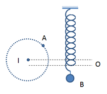 Vật A chuyển động tròn đều trong mặt phẳng thẳng đứng P (P) với bán kính quỹ đạo 8cm và chu kỳ 0,2s. Vật B có khối lượng 100g dao động điều hòa trong (P) theo phương thẳng đứng với biên độ 10cm và tần số 5Hz. Tâm I quỹ đạo trong của vật A cao hơn vị trí cân bằng O của vật B là 1cm (hình vẽ). Mốc thời gian lúc hai vật ở thấp nhất, lấy π2 = 10. Khi hai vật ở ngang nhau lần thứ 5 kể từ thời điểm ban đầu thì lực đàn hồi của lò xo tác dụng vào vật có độ lớn