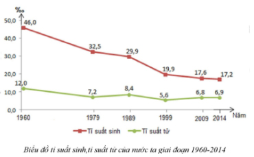 Căn cứ vào biểu đồ trên hãy cho biết nhận xét nào sau đây đúng với tình hình gia tăng tự nhiên nước ta giai đoạn 1960-2014?
