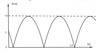 Hai điểm sáng dao động điều hòa trên cùng một trục Ox quanh vị trí cân bằng O với cùng tần số. Biết điểm sáng 1 dao động với biên độ 6cm và lệch pha \(\frac{\pi }{2}\) so với dao động của điểm sáng 2. Hình bên là đồ thị mô tả khoảng cách giữa hai điểm sáng trong quá trình dao động. Tốc độ cực đại của điểm sáng 2 là
