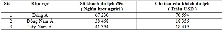SỐ KHÁCH DU LỊCH QUỐC TẾ ĐẾN VÀ CHI TIÊU CỦA KHÁCH DU LỊCH Ở MỘT SỐ KHU VỰC CỦA CHÂU Á NĂM 2003