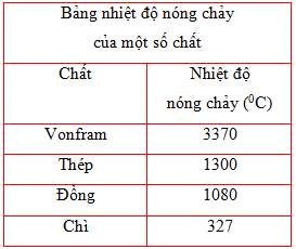Vonfram là vật liệu dùng làm dây tóc bóng đèn. Muốn chế tạo được dây tóc bóng đèn thì vật liệu đó phải có nhiệt độ nóng chảy cao.