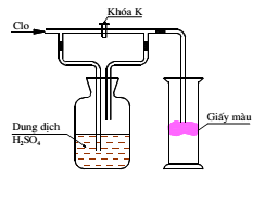 Khí Cl2 sinh ra thường lẫn nước. Do đó khi đóng hoặc mở khóa K thì có thể thu được khí Cl2 khô hoặc khí Cl2 lẫn nước. Từ đó suy ra hiện tượng xảy ra với giấy màu.