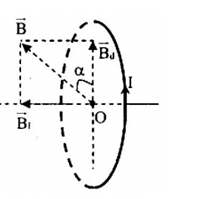 Một dây dẫn trong không khí được uốn thành vòng tròn , bán kính R = 0,1m có I = 3,2A chạy qua. Mặt phẳng vòng dây trùng với mặt phẳng kinh tuyến từ. Tại tâm vòng dây treo một kim nam châm nhỏ. Góc quay của kim nam châm khi ngắt dòng điện là bao nhiêu? Biết thành phần nằm ngang của cảm ứng từ trái đất có \({B_D} = 64\pi {.10^{ - 7}}T\) , thành phần thẳng đứng không đáng kể.