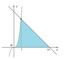 Diện tích hình phẳng giới hạn bởi đường \(y = {x^3},\,\,y = 10 - x\) và trục \(Ox\) là: