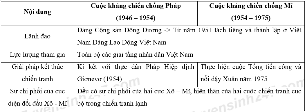 Cuộc kháng chiến chống Pháp (1945-1954) và cuộc kháng chiến chống Mỹ (1954-1975) của nhân dân Việt Nam khác nhau ở điểm nào?