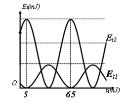 Một vật có khối lượng m thực hòa 1, có đồ thị thế năng Et1. Cũng vật m thực hiện dao động điều hòa 2, có đồ thị thế năng Et2. Khi vật m thực hiện đồng thời hai dao động trên thì cơ năng của vật có giá trị gần giá trị nào sau đây nhất?