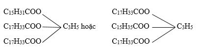 Từ dữ kiện thu được số mol muối natri panmitin và natri oleat → công thức của triglixerit ban đầu tạo bởi 2 gốc axit olein và 1 gốc axit panmitin với glixerol