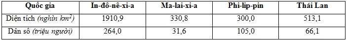 Cho bảng số liệu: DIỆN TÍCH VÀ DÂN SỐ CỦA MỘT SỐ QUỐC GIA, NĂM 2017 (Nguồn: Niên giám