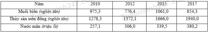 Cho bảng số liệu: MỘT SỐ SẢN PHẨM CÔNG NGHIỆP CỦA NƯỚC TA, GIAI ĐOẠN 2010 – 2017 (Nguồn:
