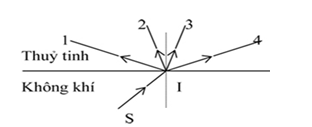Chiếu tia tới SI từ không khí tới mặt phân cách với thuỷ tinh. Trong các tia đã cho ở hình 2, tia nào là tia khúc xạ?