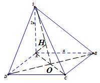 Cho hình chóp \(S.ABCD\), đáy \(ABCD\) là hình vuông cạnh \(a\). Đường thẳng \(SA\) vuông góc với mặt phẳng chứa đáy \(\left( {ABCD} \right)\), độ dài cạnh \(SA\) bằng \(2a\) (Tham khảo hình vẽ bên). Tính khoảng cách từ điểm \(A\) đến mặt phẳng \(\left( {SBD} \right)\).