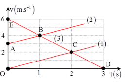 Một chuyển động thẳng có đồ thị v - t như hình vẽ: Sau bao nhiêu giây thì vật thứ 3 sẽ