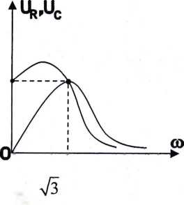 Đoạn mạch AB gồm một điện trở R, một cuộn cảm thuần có độ tự cảm L và một tụ điện có điện dung C mắc nối tiếp vào một điệnáp xoay chiều u=U0cos(ωt+φ) có ω thay đổi đươc. Biết 2L > CR2. Thay đổi ωthì điện áp hiệu dụng giữa hai đầu điện trở và điện áp hiệu dụng giữa hai đâu tụ điện được biểu diễn như hình vẽ. Tìm hệ số công suất của đoạn mạch khi điện áp hiệu dụng giữa hai đầu tụ điện đạt cực đại.