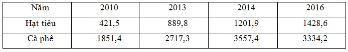 Cho bảng số liệu: MỘT SỐ MẶT HÀNG XUẤT KHẨU CỦA NƯỚC TA, GIAI ĐOẠN 2010 – 2016 (Đơn vị: