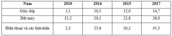 GIÁ TRỊ XUẤT KHẨU MỘT SỐ SẢN PHẨM CÔNG NGHIỆP NƯỚC TA GIAI ĐOẠN 2010 – 2017