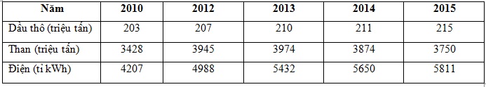 Cho bảng số liệu sau: MỘT SỐ SẢN PHẨM CÔNG NGHIỆP CỦA TRUNG QUỐC GIAI ĐOẠN 2010 – 2015 Căn