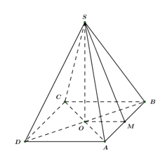 Cho hình chóp đều \(SABCD\) có \(AB = 2a,\,\,SA = a\sqrt 5 .\) Góc giữa hai mặt phẳng \(\left( {SAB}