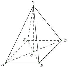 Cho hình chóp tứ giác đều có cạnh đáy bằng \(a\) và cạnh bên bằng \(2a.\) Cosin của góc tạo