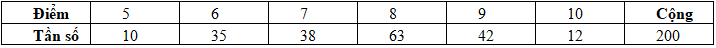 Kết quả điểm kiểm tra môn Toán trong một kỳ thi của 200 em học sinh được trình bày ở bảng sau: