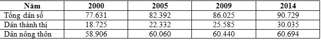 Cho bảng số liệu sau : Dân số Việt Nam qua các năm( Nghìn người)