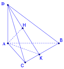 + Trong \(\left( {AKD} \right)\) kẻ \(AH \bot DK\) mà \(AH \bot BC\left( {do\,BC \bot \left( {ADK} \right)} \right) \Rightarrow AH \bot \left( {BCD} \right)\)