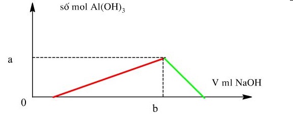 Cho từ từ V ml dung dịch NaOH 1M vào 200 ml dung dịch gồm HCl 0,5M và Al2(SO4)3 0,25M. Đồ thị biểu