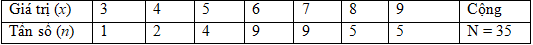 Thống kê điểm kiểm tra 15’ môn Toán của một lớp 10 trường THPT M.V. Lômônôxốp được ghi