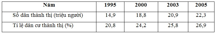Số dân thành thị và tỉ lệ dân cư thành thị ở nước ta giai đoạn 1995 - 2005