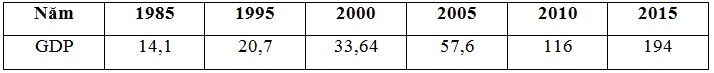 TỔNG GDP CỦA VIỆT NAM TRONG GIAI ĐOẠN 1985 – 2015 (Đơn vị: tỷ USD)