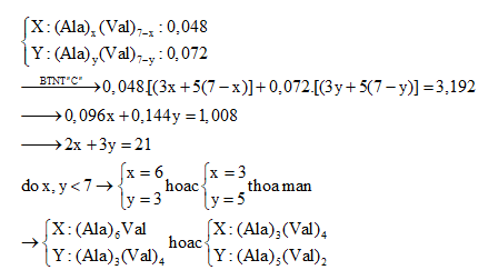 Hỗn hợp A gồm 3 peptit mạch hở X, Y và Gly -Ala - Gly (trong đó X, Y có cùng số liên kết peptit và đều được tạo thành từ alanin và valin; MX > MY) có tỉ lệ mol tương ứng là 2:3:1. Đốt cháy hoàn toàn 76,08 gam hỗn hợp A cần 4,356 mol O2 và sinh ra 10,2144 lít N2 (đktc). Số nguyên tử hidro trong phân tử Y là
