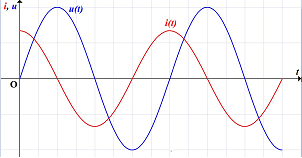 Đồ thị biểu diễn sự phụ thuộc vào thời gian của điện áp giữa hai đầu mạch và cường độ dòng điện chạy trong mạch như hình vẽ. Đoạn mạch này