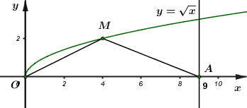Cho đồ thị \(\left( C \right):y = \sqrt x \). Gọi \(M\) là điểm thuộc \(\left( C \right),\,\,A\left( {9;0}