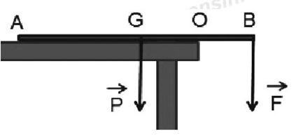 Thanh kim loại có chiều dài \(l\), khối lượng m đặt trên bàn nhô ra một đoạn bằng \(\frac{1}{4}\) chiều dài thanh. Tác dụng lực có độ lớn 40N hướng xuống thì đầu kia của thanh kim loại bắt đầu nhô lên, lấy \(g = 10m/{s^2}\). Khối lượng của thanh kim loại là: