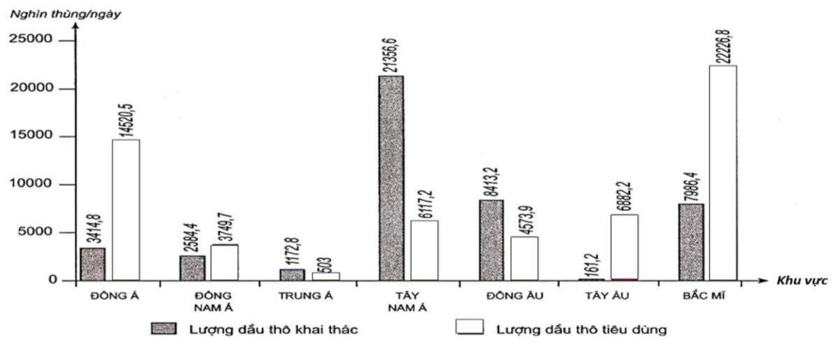 Cho biểu đồ về dầu thô ở một số khu vực của thế giới năm 2003 Biểu đồ trên thể hiện