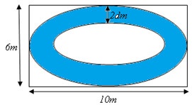 Người ta cần trồng một vườn hoa (phần tô đậm như hình vẽ). Biết đường viền ngoài và đường viền trong khu đất trồng hoa là hai đường elip. Đường elip ngoài có độ dài trục lớn và độ dài trục bé lần lượt là 10m và 6m. Đường elip trong cách đều elip ngoài một khoảng bằng 2dm (hình vẽ). Kinh phí cho mỗi \({m^2}\) trồng hoa là 100.000 đồng. Tổng số tiền (đơn vị đồng) dùng để trồng vườn hoa gần với số nào sau đây?