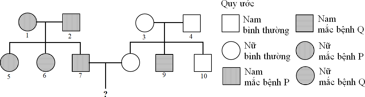 Cho sơ đồ phả hệ sau: Bệnh P và bệnh Q ở người đều do một gen có hai alen quy định alen