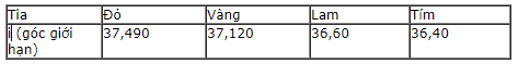 Chiếu một chùm sáng song song hẹp gồm bốn thành phần đơn sắc: đỏ, vàng, làm và tím từ một